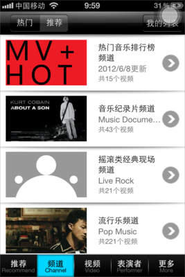 看音乐软件特色: 海量音乐MV资源等你欣赏; 最新高清现场演唱会视频; 最大原创音乐欣赏基地;