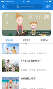 针对少年儿童家长的教育咨询类智能服务,微微育家APP功能:父母课堂——家育必修、家育理念、家育热点。“家育必修”为家长提供训练方法,形成良好的教育习惯