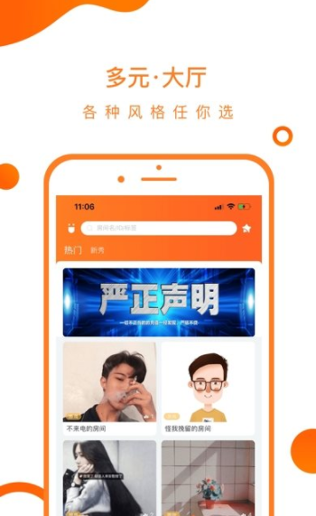 1、在这里汇聚了所有的用户都是通过声音交友,丰富多彩好玩的聊天室可以自由的讨论交流。