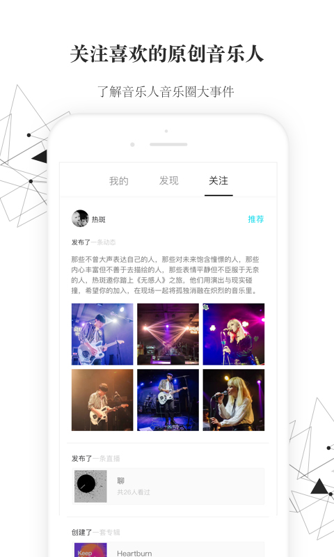 2、 一键关注欣赏的音乐人,随时查看他的动态。