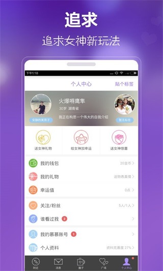 慕慕由北京炬鑫网络打造的全球首款以场景模式的社交APP,是单身男女的交友平台,简单的操作让单身的你分分钟上手,趣味、互动使其区别于其他产品,同时开创了独创的交友玩法--魅力值大PK,男生追求一个女生后可以将女生设置为女神,并只能有1个女神,但是女生可以有多个追求者,被多个人设置为女神,然后在这个基础上会有一些日常交互,比如每天加幸运,送惊喜,送礼物之类等表达自己的爱意,而对方只要轻轻一点屏幕可随时查看到,礼物的多少表达魅力指数!女神们,还不赶脚查看你的魅力值是不是爆棚了呢!