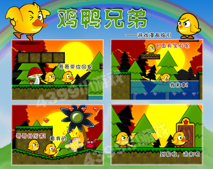 介绍:小鸡和小鸭生活在野外,它们最喜欢冒险了,这次它们来到了一个新大陆上,在大陆上它们要搜集宝石,躲避动物,这次会是一个怎么样的冒险之旅呢,我们快进入游戏帮助它们俩兄弟吧!
