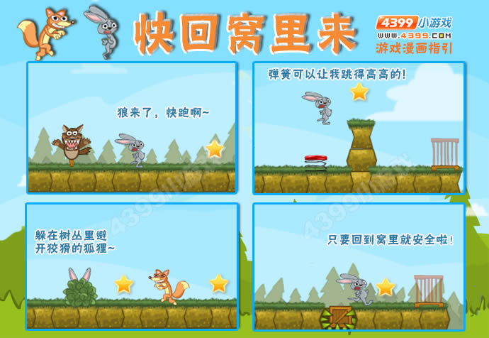 介绍:杰克大叔有一个引以为傲的农场,农场里圈养了许多的小动物,他最喜欢小兔子了,它们听话,可爱,大叔最疼爱它们。可是有一天杰克大叔发现窝里的小兔子们全都不见了,他非常的担心。经过调查,不知道谁恶作剧,在小兔子们的家里放了一个狼摸样的草人。现在事情已经查明,就让我们来帮助杰克大叔找回这些惊慌逃跑了的小兔子吧!