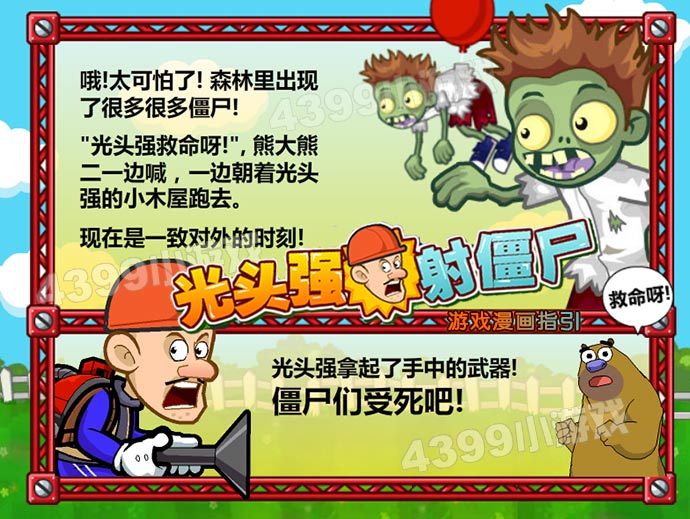 介绍:哦!太可怕了!森林里出现了很多很多僵尸!熊大熊二一边喊:“光头强救命呀!”一边朝着光头强的小木屋跑去。现在是一致对外的时刻!光头强拿起了手中的武器!僵尸们受死吧!