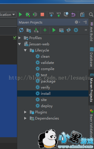 3、依赖添加正确后,检查本地的类有没有下载下来,一般是找“C:/Users/Administrator/.m2/repository”这个路径下有没有相应的jar包,如果没有的话,就在编译器中打开”Maven Projects “标签,先进行clean一下,在执行install,这里与在命令行下执行是一样的效果。