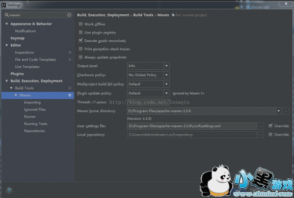 2、编译器中的maven有没有设置成功,File - Settings - 搜索maven,Maven home directory,设置为自己安装的maven路径