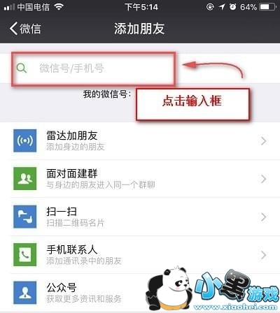 4.点击查找“微信号/手机号”输入框;