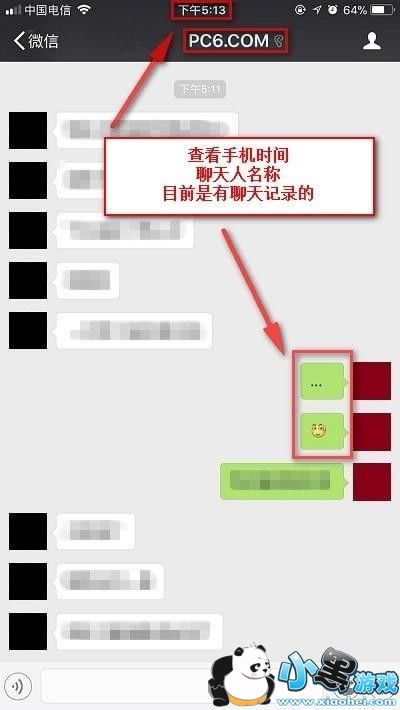 1.打开任意微信好友,可以观察手机时间,好友昵称,以及聊天记录;