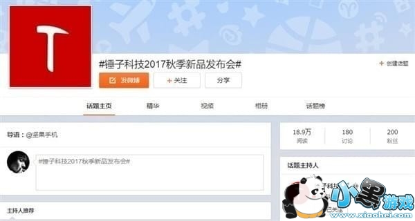 今天,锤子科技将要召开发布会的消息得到了确认,微博上已经出现了名为“锤子科技2017秋季新品发布会”的话题,话题主持人显示是锤子科技(北京)有限公司。