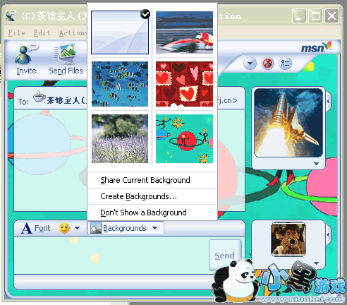 在MSN Messenger 6.0,还可以自行修改聊天背景,可以随意选择图片。