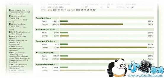 我们也进行了CPU相关性测试,从上表可以看到随着CPU频率大幅降低,CPU得分是随之而低的,GPU得分改变很小很小,总成绩改变也不多。所以我们说AquaMark3的成绩受CPU频率影响不大,它在CPU无关性方面做的相当成功。