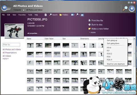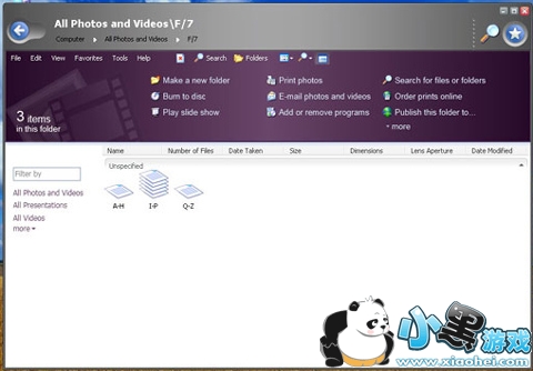 图片预览程序与Windows XP 版本的类似,但界面却已经是两码事,并且增加了小功能。 除了WIndows XP 具备的旋转和文件删除,你还可以修剪,调整曝光和消除红眼等。当你执行了这些功能之后,开可以通过”前进“和”后退“来修改自己的决定,迅速恢复修改前的状态。