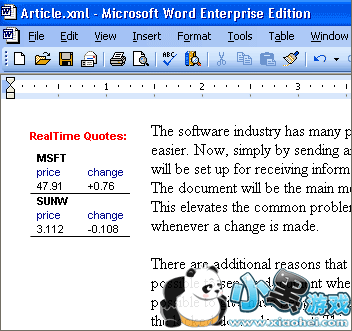 广大商务企业还可从基于Word 2003的解决方案中获取收益。Word 2003中针对客户自定义架构的支持特性将可确保广大商务企业定义出符合自身需要的文档结构,并在文档创建的同时将XML标记包含在内。商务企业甚至可针对用户按照自定义架构输入文档的信息资料加以验证。