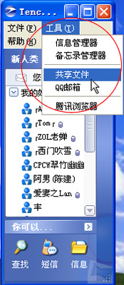 工具栏的功能比较强大,而且是我们经常使用的,比如“信息管理器”和“备忘录管理器”。看见腾讯浏览器,我就觉得很奇怪,相当初,一打开QQ,哪个可恶的Tencent 浏览器就弹出来,现在腾讯也会做人了点,把它去掉了。不过QQ浏览器在打开多个窗口的时候,速度的确是比较快,并且占用的资源比较少,使用也蛮方便的。