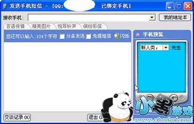 发送手机短信息的界面,和以前QQ的没有什么区别,不过可以发送的字数倒是提高了几个,并支持分条发送。自然的是,这个界面与腾讯的内容是集成的了,赚钱的方法就又多了点,不过腾讯承诺,从现在开始到2月1号,使用TM发送短信是不收费的,不知道发图片如何?而且到了2月1号之后,使用TM但没有发手机短信也是不收费的,但我就不明白为什么官方论坛有那么多人在嚷嚷,说腾讯收了他们的费用呢?