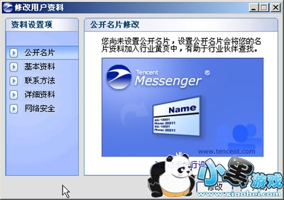 TM首次登陆成功之后,TM会首先弹出一个方框,让用户修改资料,其中主要的修改内容有:1、公开名片 2、基本资料 3、联系方法 4、详细资料 5、网络安全