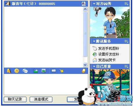 不一样的QQ秀 面板头像都焕然一新,整个聊天窗口也有很大改观哦!!你肯定要问QQ秀有啥不一样?别急嘛!QQ 2004的聊天窗口里可以看见自己的QQ秀啦!这一点mm们肯定喜欢。