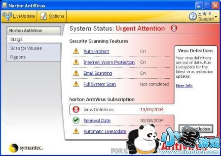 > 近日,互联网上出现了目前仍处于Beta测试阶段的Norton Antivirus 2005的数张截图。从图片中我们可以看到,在图形用户界面的布局上,Norton Antivirus 2005和Norton Antivirus 2003及2004相似,只是作了一些修订。