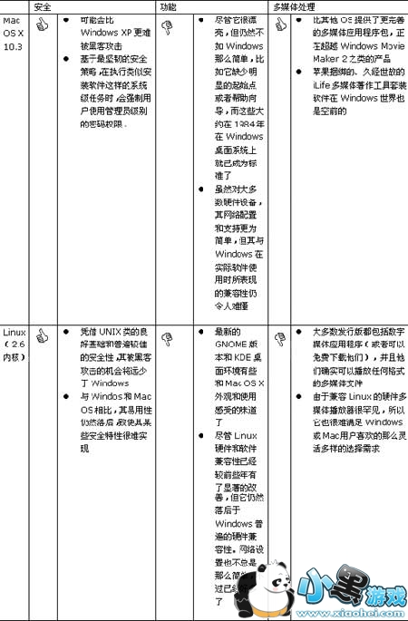 Mac OS X系统和Linux系统近年来一直在稳步发展,目前在某些方面的性能已经超过了Windows系统。这里,我们比较了这两个可选的OS平台,并将其与Windows特性比较概括如下表。