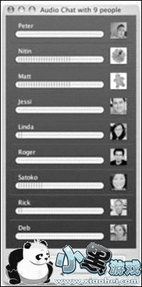 iChat3.0改变了Panther中只能实现一对一的语音聊天。现在,你可以和10 个参与者一起语音聊天了。