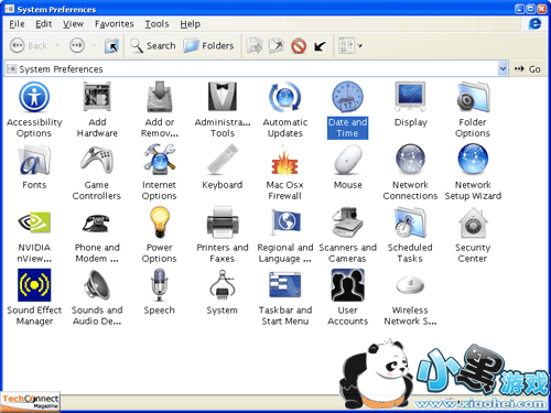 > 近日techconnect发布了MacOSX Transformation Pack 1.0,如果你厌倦了Windows操作系统,想体验一下Mac OS的神奇魅力,那它最适合不过了,它可以将你的Windows转换为Mac OS。不过,目前这个Beta版软件只适用于升级了SP2的Windows XP和Windows Media Center 2004两种操作系统,并且Beta版的使用存在风险,望慎用。是不是很酷啊,看一下截图吧: