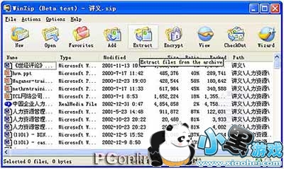 首先是笔者最喜欢的WinZIP(没办法,太好色了),无论是文件图标还是程序界面,WinZIP都可以用华丽来形容。WinXP真彩32位图标和大大的工具栏图标,看着就舒服。