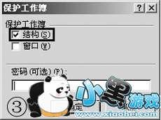实现方法:执行“工具→保护→保护工作簿”,出现如图3所示的对话框,选中“结构”选项,同时可以设置保护密码。