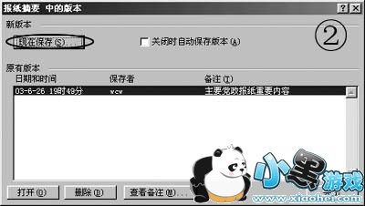 在“文件”菜单上,单击“版本”命令,打开“版本”对话框,单击[现在保存]按钮(如图2)。在“保存版本”对话框,在“版本备注”中输入正在保存的版本的说明信息,再单击[确定]按钮后保存。然后将文件中的重要内容删除,只保留一些普通内容,或重新添加一些与文件无关的内容,保存并关闭文件。重新打开文件,只显示普通内容,要显示保存的“版本”内容,单击[文件]→[版本]命令,打开“版本”对话框(如图2),选中原有版本,单击[打开]按钮,即能显示“版本”中内容。