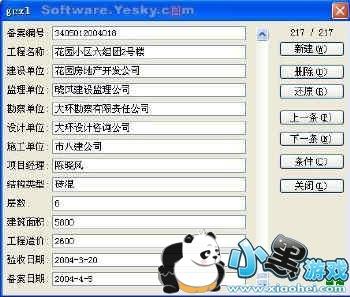 单击窗体中的“条件”按钮,输入要查询的条件(如在“监理单位”对应的方框中输入“*雨山”),然后再单击“上一条”或“下一条”按钮,即可分别查询到“监理单位”中包含“雨山”二字所有记录的详细情况。 (注:“*”号代表所有字符;如果查询的字符是单元格的第一个字符,则“*”号可以省略。)