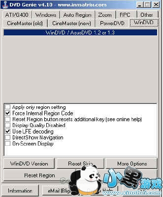 DVD Genie是一款小巧玲珑的DVD播放辅助工具,它可以允许你,轻松修改各种DVD播放软件隐藏的设置选项,其中最“拿手”的当然是破除区码限制。该工具支持PowerDVD、SoftDVD、WinDVD、ASUSDVD、XingDVD、VaroDVD等常见的DVD播放软件。与其他DVD播放辅助工具相比,DVD Genie的功能有点“单薄”,不过其区码破除功能,还是非常吸引人的,不少玩家都说它的修改成功率非常高。