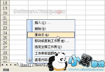 启动Excel2003,使用默认新建的工作薄和工作表。先修改Sheet1工作表的标签名称为“联系人通讯录”。将鼠标移至Sheet1标签处,单击鼠标右键,在弹出的菜单中选择“重命名”命令(图 2),原来的标签名称“Sheet1”显示为反白,这时输入“联系人通讯录”回车即可。