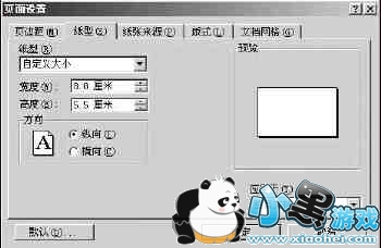 新建一个文档,单击菜单“插入→对象”,弹出“对象”对话框,选择“Microsoft Word图片”类型。接着单击“文件→页面设置”,在弹出的“页面设置”对话框中将“纸型”选项卡中的“纸型”项设为“自定义大小”,然后输入纸张大小为宽度“8.8cm”、高度“5.5cm”(5cm也可以)。在右侧“预览”部分可以看到单张名片的版式已经出来了(如图1所示)。