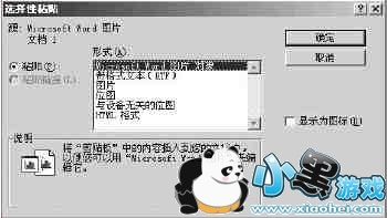 接着再返回制作单张名片时的Word文档,依次点击“编辑→复制”、“编辑→全选”。此时单张名片的状态为全选状态。操作完后切换到有十个框的文档中,单击第一行第一列的那个单元格(即左上角),依次点击“编辑→选择性粘贴”菜单项,在弹出的“选择性粘贴”对话框中选择“Microsoft Word图片对象”项(如3所示)。