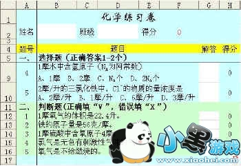 完成功能:我们用Excel制作这样一份电子练习卷,选择题5题,每题正确答案可能有1—2个,完成正确得10分,如果有2个正确答案,学生选择了1个且正确,得4分,其它均不得分;判断题5题,判断正确得10分,反之不得分。