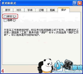 8、先选中B2单元格,再按住Ctrl键,然后分别选中D2、G6至G10、G12至G16单元格,打开“单元格格式”对话框,切换到“保护”标签下(如图4),清除“锁定”选项前面复选框中的“∨”号,确定返回。