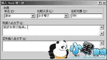 有时我们需要给不同的收件人发去内容大体一致,但是有些地方有区别的邮件。如寄给家长的“学生成绩报告单”,它根据学生总分不同,在不同的报告单中写上不同的内容,总分超过290分的学生,在报告单的最后写上“被评为学习标兵”(如图1右),而对其它的学生,报告单中则没有这一句(如图1左)。怎样用同一个主文档和数据源合并出不同的邮件?这时就要用到“插入Word域”。在邮件中需出现不同文字的地方插入“插入Word域”中的“if…then…else(I)…”。以“学生成绩报告单”为例,具体做法是将插入点定位到主文档正文末尾,单击邮件合并工具栏中“插入Word域”,选择下级菜单中的“if…then…else(I)…”,在出现的对话框中填入图2所示的信息,单击“确定”按钮。