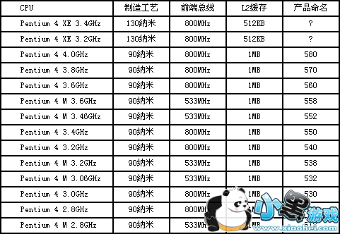 Pentium 4系列处理器命名(5XX系列):