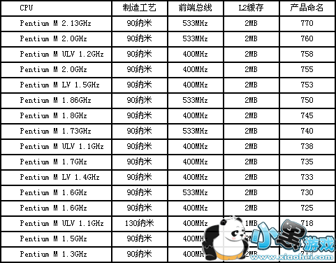 Pentium M系列处理器命名(7XX系列):