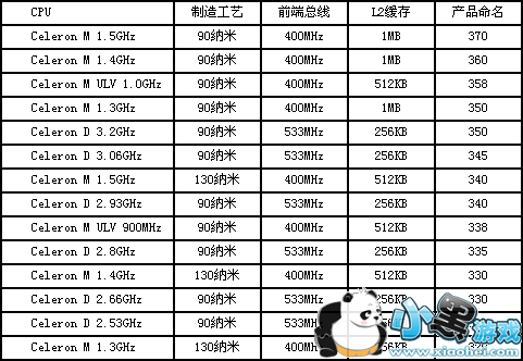 Celeron系列处理器命名(3XX系列):