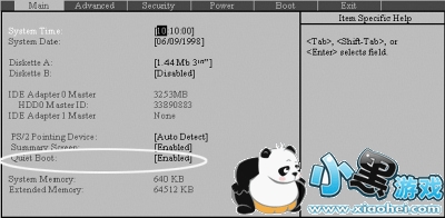 和普通台式机一样,笔记本电脑的BIOS设置优化是最基本的优化方法,合理设置本本的BIOS,能够加快开机速度,提高内存、CPU、硬盘及显示系统的工作效率,而不同品牌的笔记本电脑的BIOS设置方法也大同小异。一般而言,在BIOS设置中有一个“Quiet Boot”选项,这是设置开机画面和开机硬件检测等用的。和台式机一样,默认情况下笔记本电脑开机时首先检测处理器和内存、硬盘等,其中还包括开机画面的显示,而这些工作有时没有必要进行,因此把“Quiet Boot”一项设置为“Enabled”,这样就不会显示开机画面及进行硬件检测等步骤了,自然可以大大提高开机启动速度。