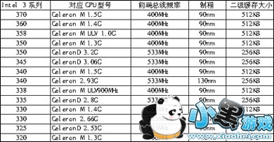 目前的主流Celeron处理器全面采用Northwood和Prescott核心。在Intel采用新的命名方式之后,大家需要对一些主流的Celeron处理器实际主频有所了解。此外,采用Prescott核心和90nm工艺的新赛扬的命名是“Celeron D”,表二中的“LV”代表Low Voltage低电压“ULV”是Ultra Low Voltage超低电压的缩写。