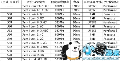 表一 Intel 5系列处理器规格辨析