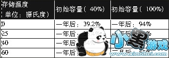 真相:其实不仅仅有上面提到的谣传,锂离子电池到底该充满了保存还是放光了保存肯定会让很多人感到迷惑?这一问题的解答要从其先天性的缺陷谈起,那就是“老化效应”。锂离子电池在存储一段时间后,即使不进行循环使用,其部分容量也会永久性的丧失,这是因为锂离子电池的正负极材料自出厂时便开始了它们的衰竭历程。不同的温度及饱和程度下老化的幅度也是不同的,具体幅度可见表所示。