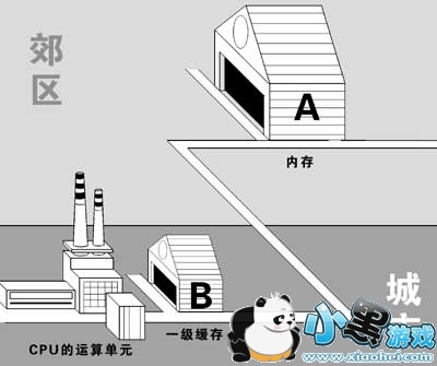 我们可以形象地把CPU的运算单元想象成是一间坐落在城市中心的工厂,把内存看成是工厂设置在郊区的一间面积很大的仓库A。