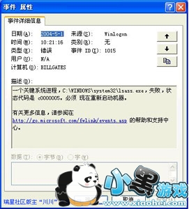 如果用户无法确定自己的电脑是否出现过上述的异常框或系统重启提示,还可以通过查看系统日志的办法确定是否中毒。方法是,运行事件查看器程序,查看其中系统日志,如果出现如下图所示的日志记录,则证明已经中毒。