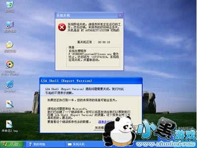 一、出现系统错误对话框 被攻击的用户,如果病毒攻击失败,则用户的电脑会出现 LSA Shell 服务异常框,接着出现一分钟后重启计算机的“系统关机”框。