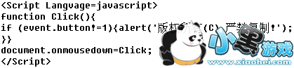 这样在浏览网页时除单击鼠标左键外,其他任何形式的鼠标点击或组合点击,都将出现“版权所有(C),严禁复制!”的提示框。