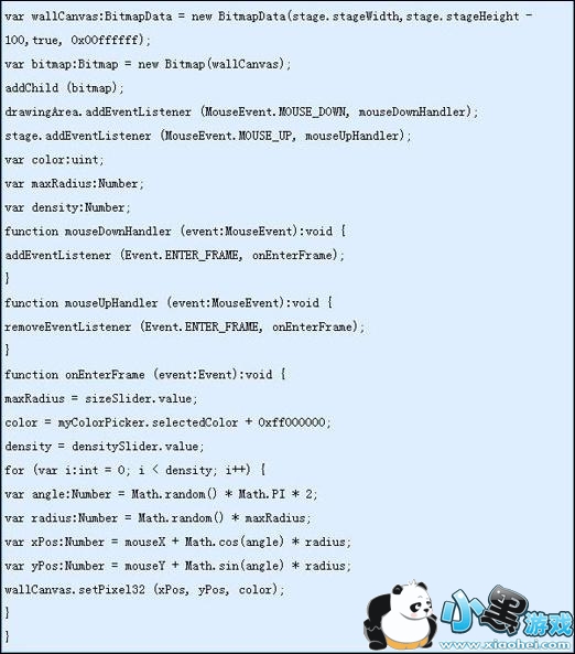 /*我们需要创建一个BitmapData对象以便以一个像素图形对象工作。我们希望wallCanvas一开始时是透明的,这就是为什么我们用0x00ffffff值作参数。*/