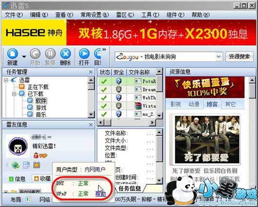 图2 迅雷已经支持UPnP六、支持DHT网络 获得更多peers