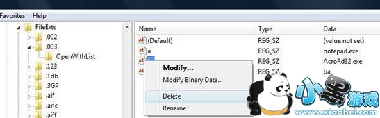 *定位到HKEY_CURRENT_USERSoftwareMicrosoftWindowsCurrentVersionExplorerFileExts[file extension]OpenWithList
